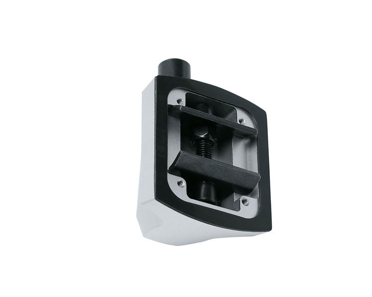 Diese Schnellbefestigung für Wand-Schienensysteme wird mittels 2 gehärteter Stahlklammern an der Schiene befestigt.