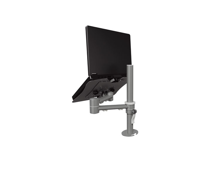 Befestigen Sie Ihr Laptop, Notebook oder Netbook mit dem Dataflex Viewmate Style Notebookarm 592 an Ihrem Tisch entweder mit der Tischklemme oder der Durchschraubbefestigung.